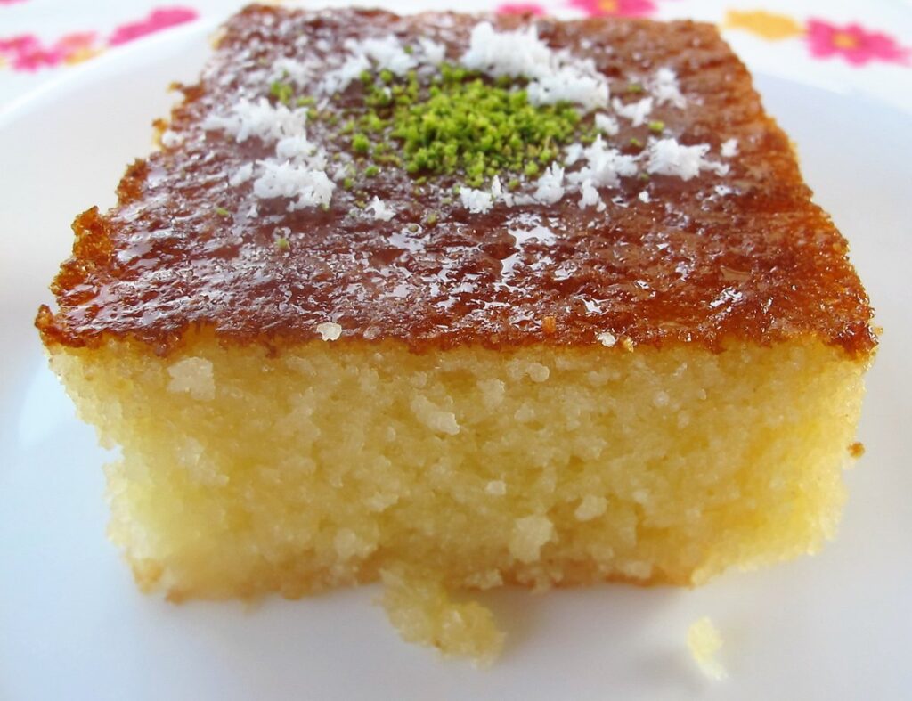 Противень диаметром 25 см., смазать сливочным маслом и посыпать мукой. Миндаль отварить, очистить и крупно нарезать. Отделить белки от желтков. Белки взбить с щепоткой соли. Желтки взбить с сахаром и натертой коркой 1 лимона 7-8 м. К желткам положить муку и манную крупу. Тщательно перемешать . Добавить белки и миндаль. Тщательно перемешать деревянной ложкой. Затем добавить сливочное маслаьи перемешать. Выложить в форму для кекса. Выпекать в духовке на среднем огне 1 час. Тем временем сварить сироп. Полить им горячий манник. Дать остыть перевернуть в тарелку, нарезать ломтиками.