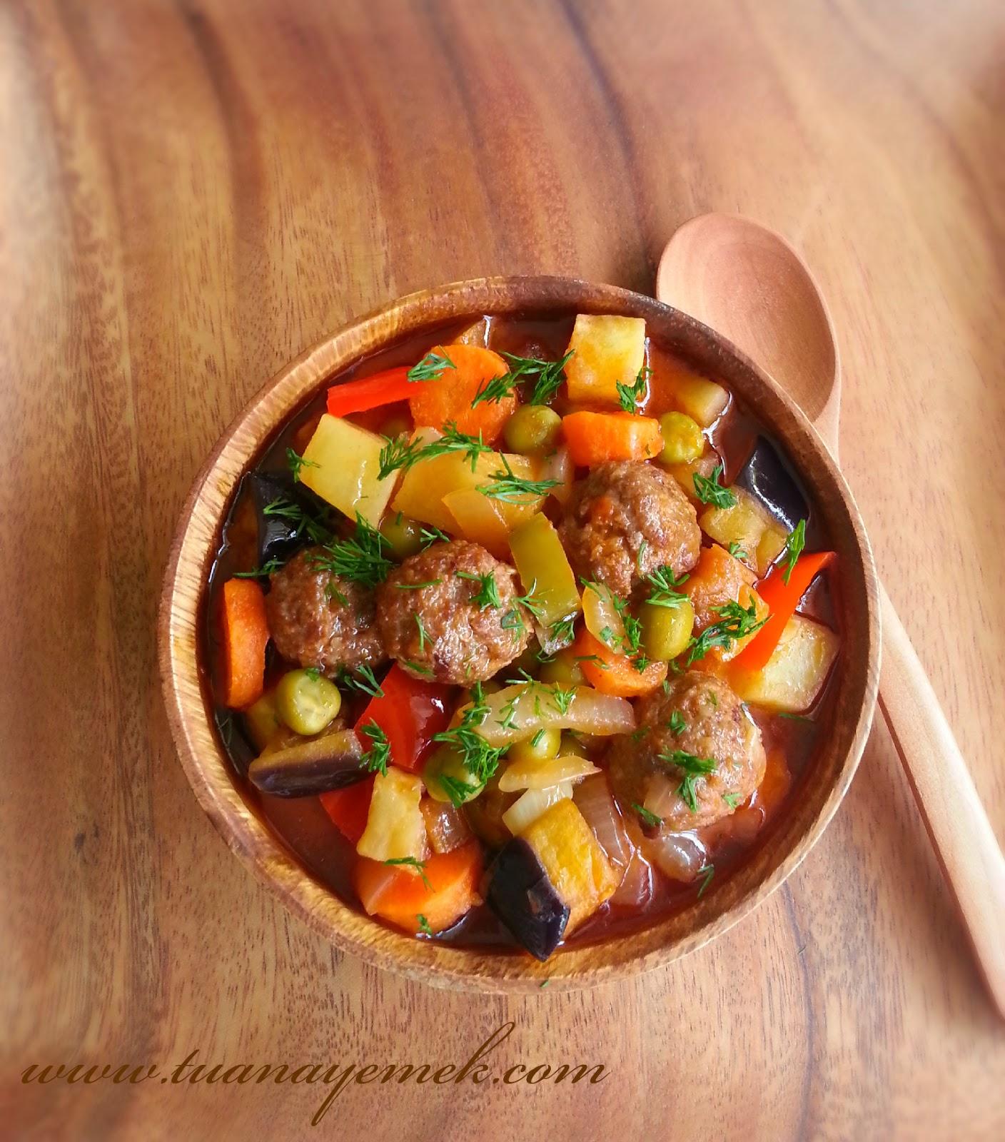 В кастрюлю с растопленным маргарином положить очищенный и нарезанный на 7-8 частей лук, нарезанное мясо, 1 ст.ложку тимьяна. Варить на среднем огне 25-30 м. Посолить, добавить 2.5 стакана горячей воды, закройте крышкой и варите на медленном огне 1.5 часа, добавить нарезанный кубиками картофель и нарезанную кольцами морковь. Закрыть крышкой и варить до готовности овощей 25 мин.