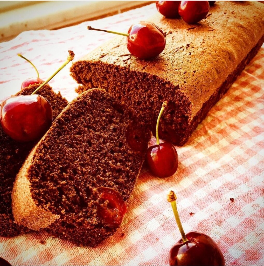 Рецепт пирога: черешня-350 гр какао (порошок) -2ст л вода-120 мл мука-8 ст л яйца-3 шт ванильный сахар-1 п разрыхлитель-1 п (8гр) щепотка соли сахарный песок-6 ст л подсолнечное масло-6 ст л. Воду с какао перемешать, довести до кипения и выключит. Яйца взбить с сахаром, после добавить ванильный сахар и подсолнечное масло. Остывшую шоколадную смесь влить в яичную, добавить муку, разрыхлитель и перемешать. В форму смазанную подсолнечным маслом и припудренную мукой вылить готовое тесто, выложить на него черешню и печь пирог в горячей духовке при 180 градусах 40-50 мин.