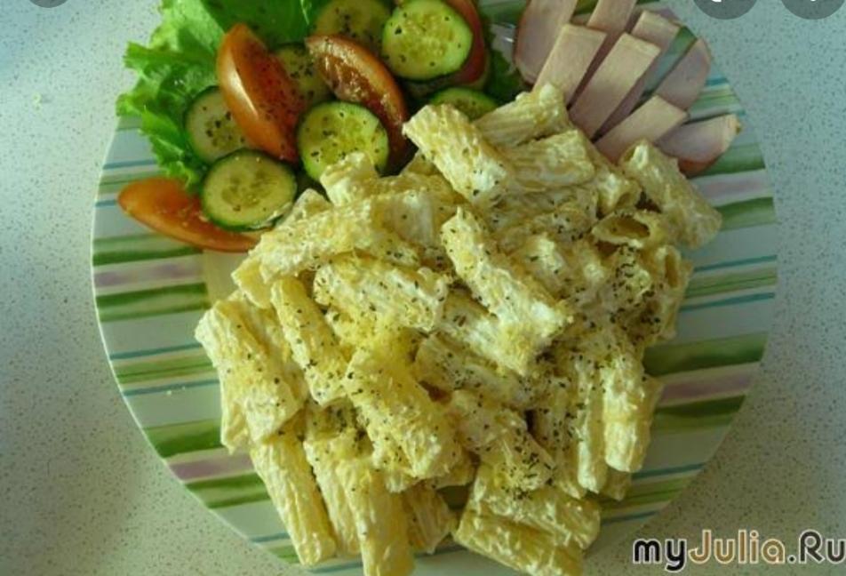 2.Сварить макароны, смешать их с творогом.