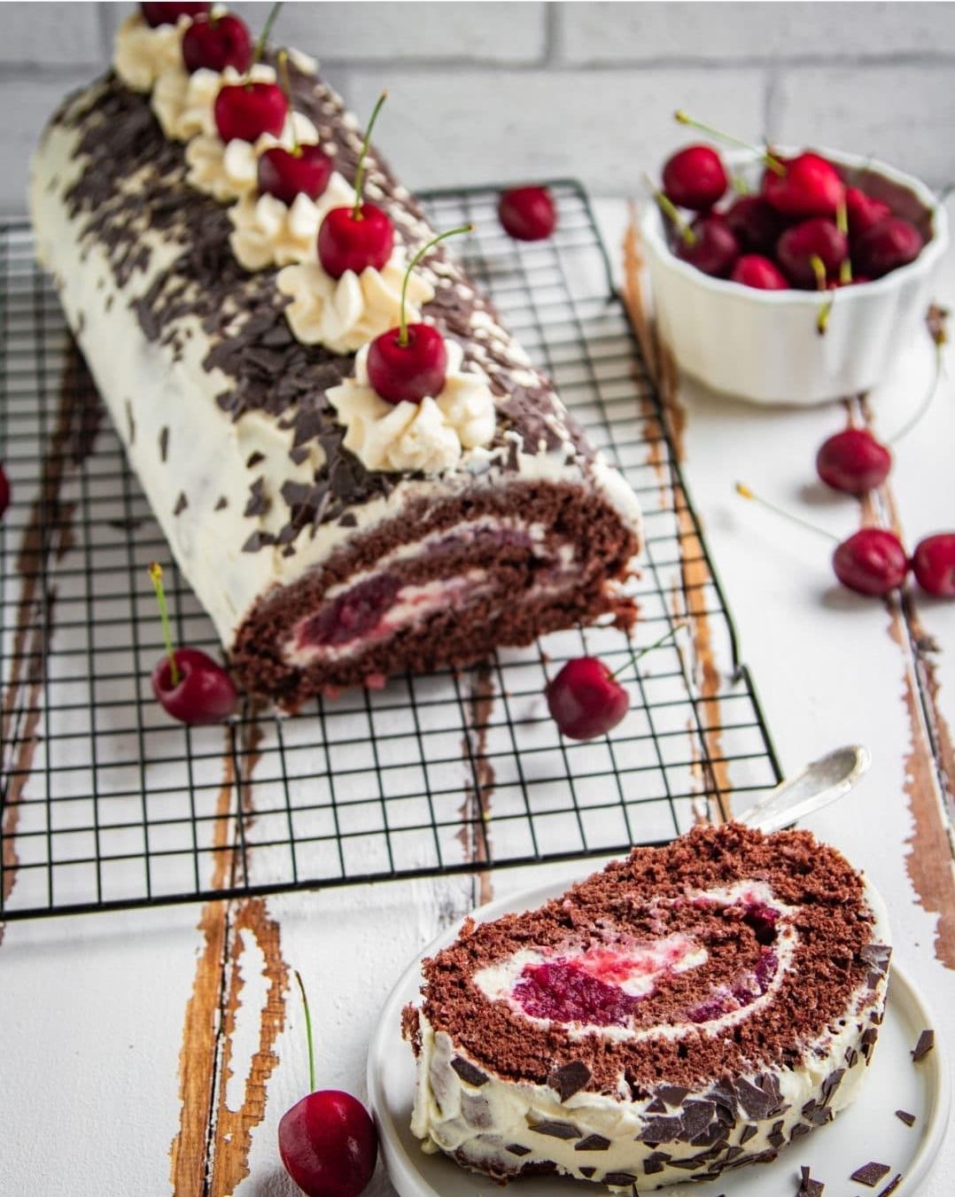 Этот шоколадно-вишневый рулет можно испечь и на праздничный стол и на выходные.)