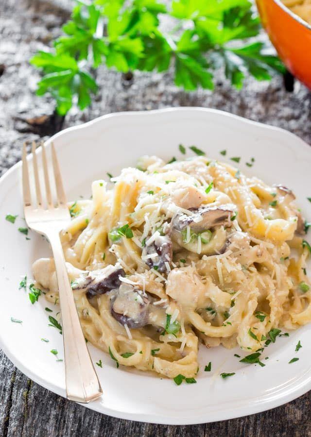 Спагетти с грибами в сливочном соусе