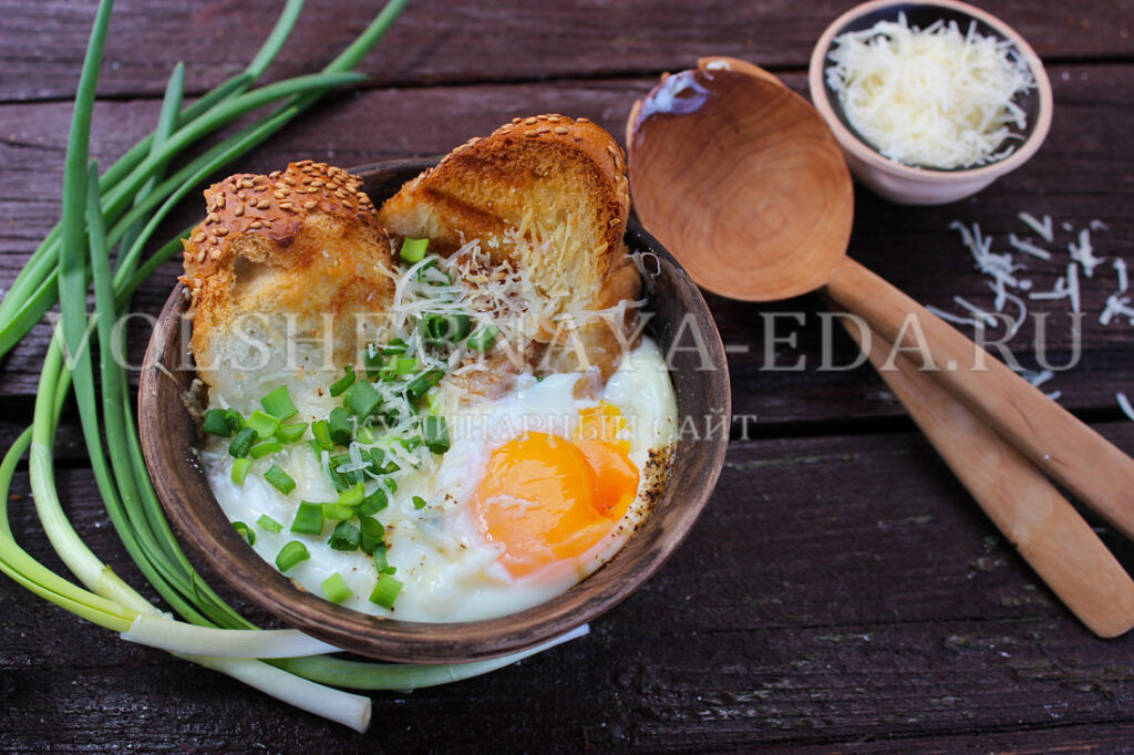 2.Добавить в суп сырые яица и поставить в духовку на 10-15 мин.(до затвердения белка)