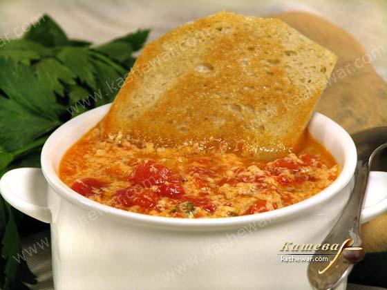 4.Сыр натереть на крупной терке, слегка взбить с яицами и добавить к готовому горячему супу.