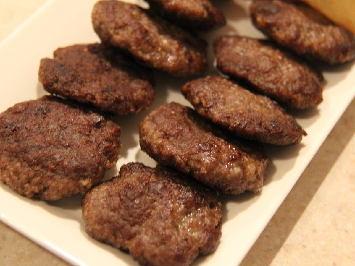 Хлеб замочите в воде, измельчите и добавьте все ингридиенты за исключением оливкового масла, месите 10 м.отрывайте от фарша кусочки размером с грецкий орех и скатайте котлеты в виде пальца . Раскалите в сковороде масло, котлеты жарьте на среднем огне. Подавать на стол с жаренным картофелем.