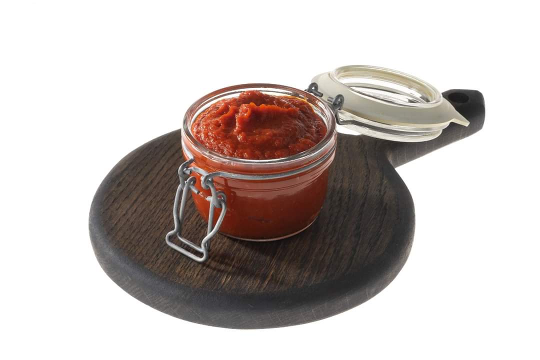 Чтобы сохранить томатную пасту, ее можно закатать в банку или заморозить в формах для льда.