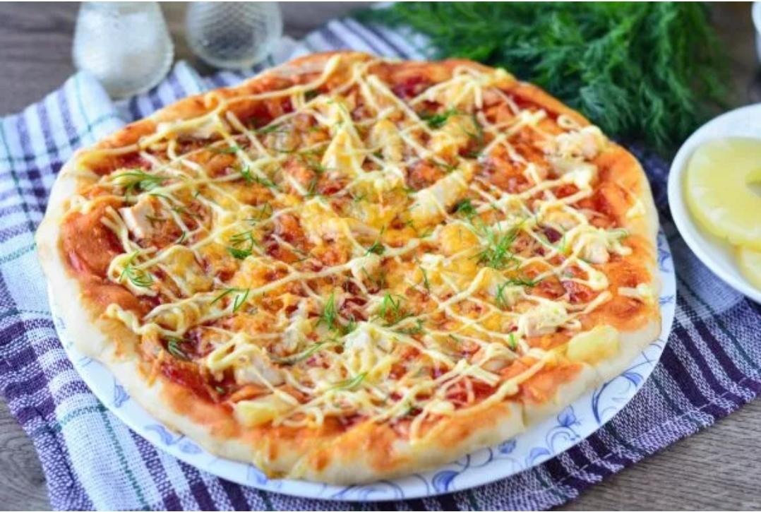 3.Тесто выложить на противень , смазанный маслом, сверху положить фрукты , посыпать тертым сыром.