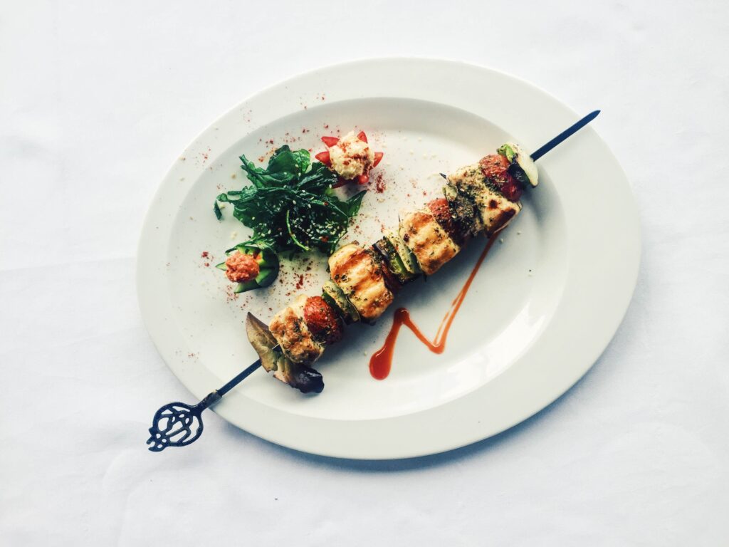 Рыбу-меч нарезанную кусочками размером со спичечный коробок, положить в миску, добавить перец, соль, лимонный сок, оливковое масло, сок лука и лавровый лист. Тщательно перемешать и оставить на 5-6 часов. Затем кусочки рыбы на расстоянии 2-3 см, надеть на шампур. Затем время от времени переворачивая и поливая собственным соком, запечь на углях 5-6 мин. Подавать на стол с измельченной петрушкой и перемешанной с оливковым маслом и отварной свежей картошкой.