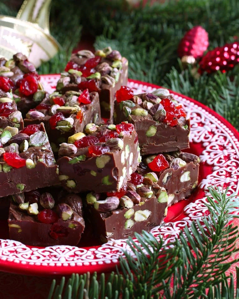 ШОКОЛАДНЫЙ ФАДЖ С ФИСТАШКАМИ И ВЯЛЕНОЙ ВИШНЕЙ