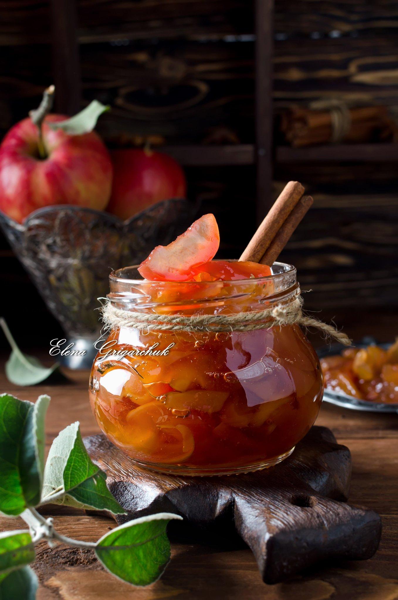 Elmaları soyun, küçük dilimler halinde kesin, kaynar şurubu koyun ve ara sıra karıştırarak yumuşayana kadar kısık ateşte pişirin. Bitmiş reçeli değerlendirin ve bir cam tabağa aktarın.