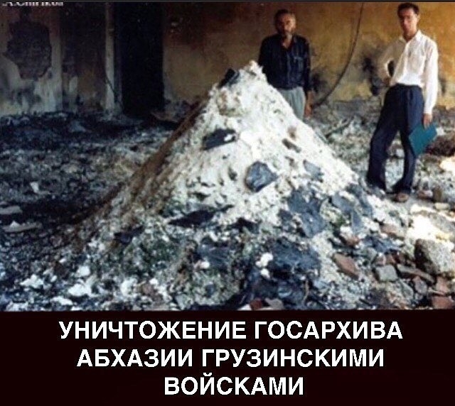 Gürcistan Devlet Konseyi birlikleri Suhum’a girdikten sonra, öncelikle Abhazya’nın tüm devlet arşivini yaktı. Abhaz halkının bin yıllık tarihine ilişkin en değerli belgeleri küle dönüştü. 160 binden fazla belge imha edildi. Toplamın yüzde 10’undan azı hayatta kaldı. Böylece Gürcistan, Abhazların geçmişini yok etmek istedi.