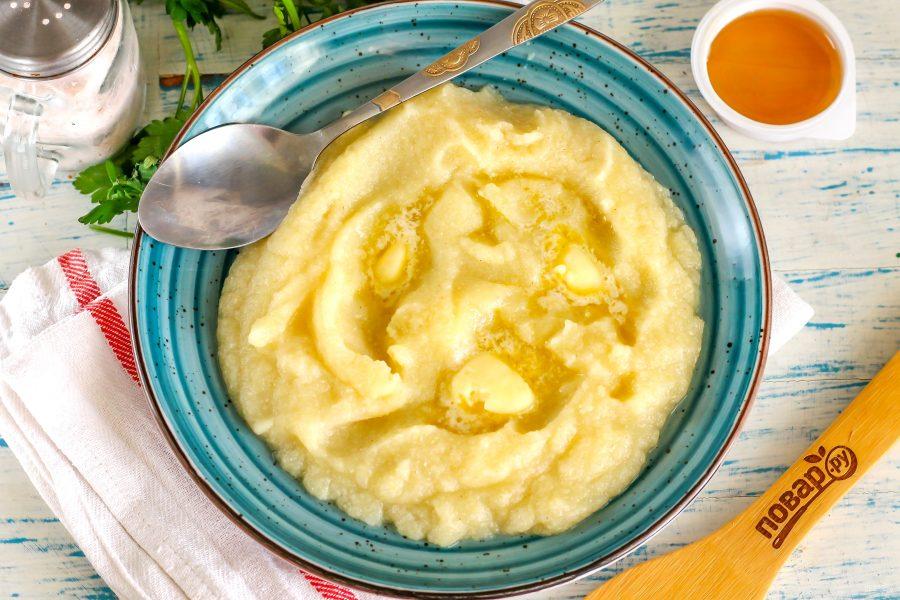 Sürekli karıştırarak, mısır ununu kremsi bir renk oluşana kadar yağsız bir tavada kızartın, kaynar suya ince bir akış ekleyin ve karıştırarak 10-15 dakika kısık ateşte pişirin. Sonra sıcak süt, tuz ve şekeri dökün, iyice karıştırın ve 5-7 dakika daha kaynatın. Bu yulaf lapası kalorisi çok yüksektir, bebek mamasında kullanılabilir.