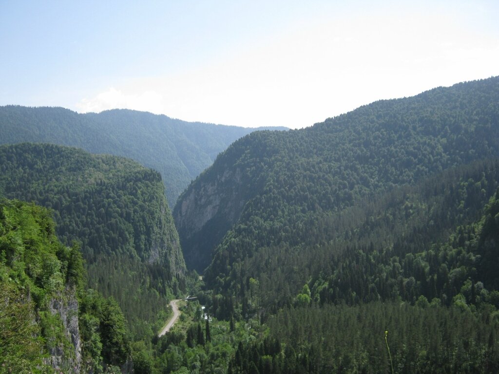 [ Gözetleme güvertesinde aynı anda 10’dan fazla kişi bulunamaz. Burdan Yupşara Kapıları’nın nefes kesici bir manzarasını sunmaktadır. Aşağıda 8 km uzunluğunda bir kanyon var. Kanyon bazı yerlerde 20 metre genişliğe kadar çok dardır. Kayaların yüksekliği 500 metreye ulaşıyor. Turistlere göre, Kafkas Dağları’nın en güzel manzaralarından biri Abhazya’daki “Elveda Anavatan” gözetleme noktasından açılıyor.