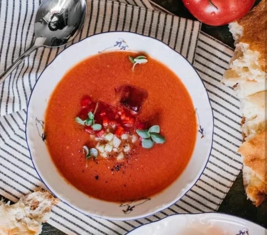 1. Domates, salatalık, biberin üçte biri, kereviz, acıka, limon suyu ve baharatları bir karıştırıcıda orta hızda çırpın.