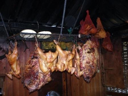 Bitmiş hindi karkası tercihen yağlı, göğüs boyunca uzunlamasına kesilir, bol tuz serpilir, 1-2 gün serin bir yerde tuzlanmaya bırakılır. Ardından karkası hasır bir zemine koyun ve ihale edilene kadar periyodik olarak çevirerek dumanlayın. Bıldırcın, sülün ve diğer av kuşlarının karkasları da aynı şekilde füme edilir,şişede ızgara da ve ya tavada pişirilir.