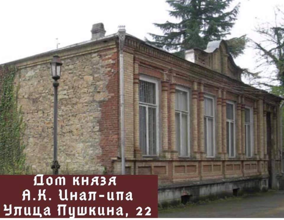 ⚜️Alahadzyh prensi Alexander Konstantinoviç Inal-ipa, 19. yüzyılın sonunda. 88 numaralı inşaat mahallesinde, Suhum’da 1 ve 2 numaralı arsaları satın aldı. 1900 yılında, mimar, askeri mühendis VIIvanovsky’nin projesine göre, Prens AK İnal-ipa, üzerinde geniş bir tek katlı ev inşa etti. 2 numaralı site (şimdi bir mimari anıt, Puşkin Caddesi, 22).